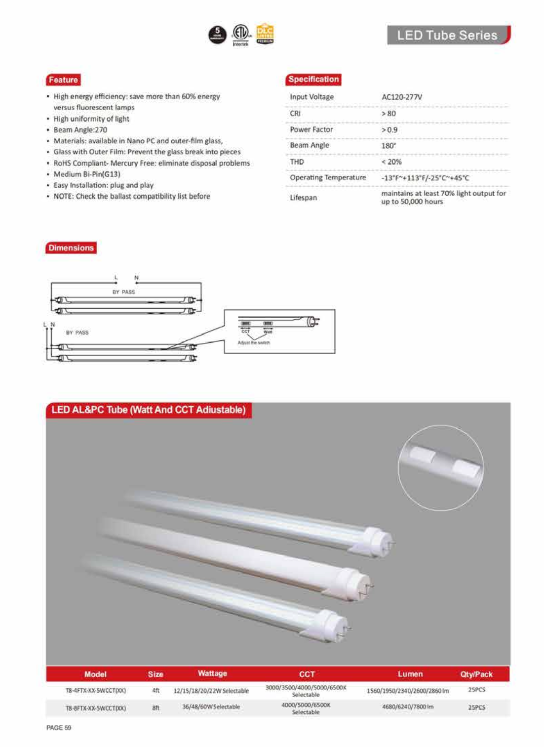 Mercury-free and RoHS compliant, they ensure safe and eco-friendly operation. Available in both 4FT and 8FT models with clear or frosted covers, as well as adjustable wattage and colour temperatures to suit various lighting needs.