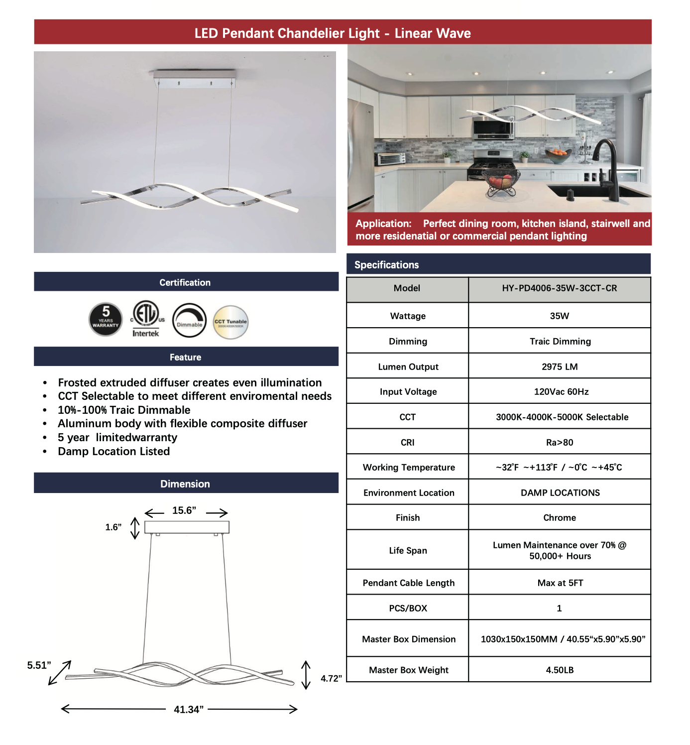 - Model: HY-PD4006-35W-3CCT-CR